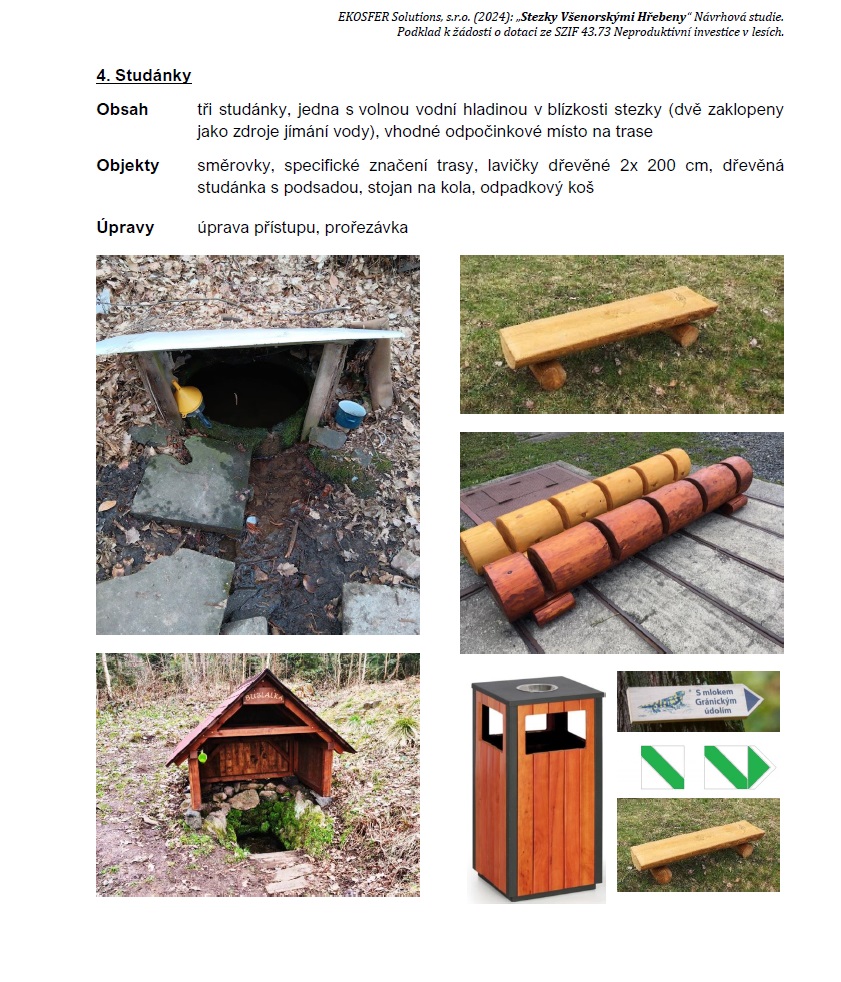 Představujeme veřejnosti studii „Stezky Všenorskými Hřebeny“, která má za cíl podporu rekreační funkce lesa, úpravu lesa jako takového, včetně lesních cest a cestiček. Rádi bychom na tento projekt podali žádost o dotaci. Uvedené typy mobiliáře je potřeba brát jako referenční a ukázkové. Zde je odkaz na studii